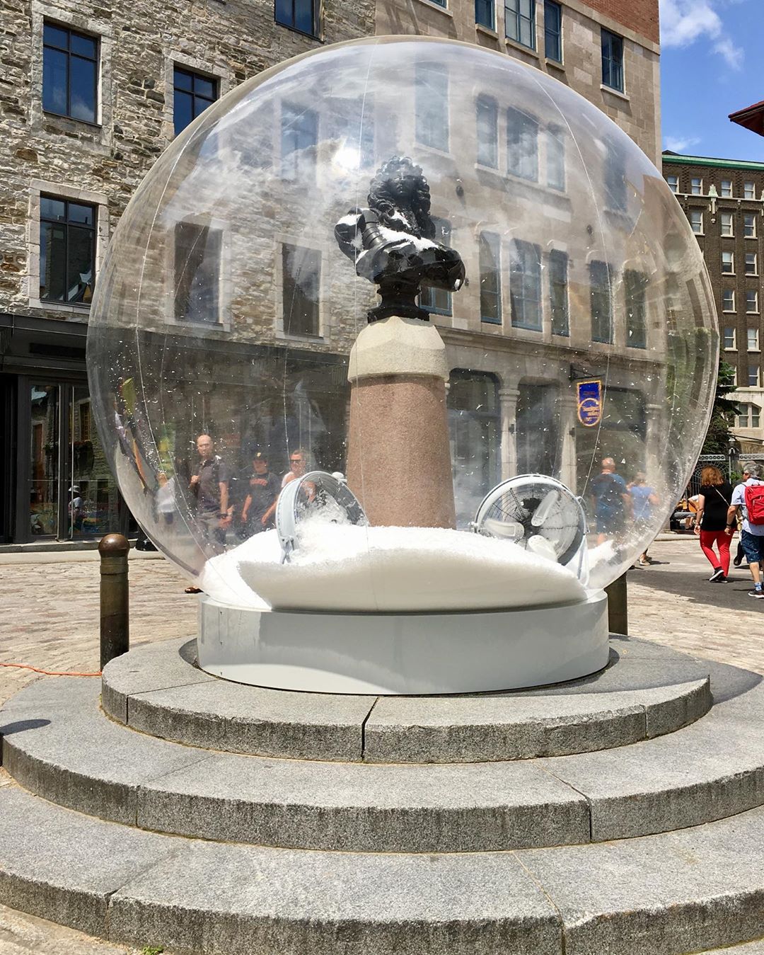 C’est au Québec que cette bulle de cristal gonflable a été installé pour le projet des passages insolites. Une idée folle qui rappelle les hivers froids du Canada durant la saison estivale. La boule de cristal qui est d’habitude achetée en souvenir est ici transportée dans un univers plus grand et surtout gonflable. Cette bulle cristal gonflable représente une rencontre imaginaire entre l’hiver, la saison la plus emblématique au Québec, et le roi soleil.