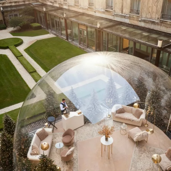 Imaginez un espace magique au cœur de Paris, où élégance historique et innovation contemporaine se rencontrent. Notre bulle gonflable à l’Hôtel du Collectionneur offre exactement cela : une expérience immersive sans précédent dans l’un des établissements les plus prestigieux de la capitale. Installée avec soin dans les espaces remarquables de cet hôtel 5 étoiles, la bulle crée un environnement à la fois intime et spectaculaire.