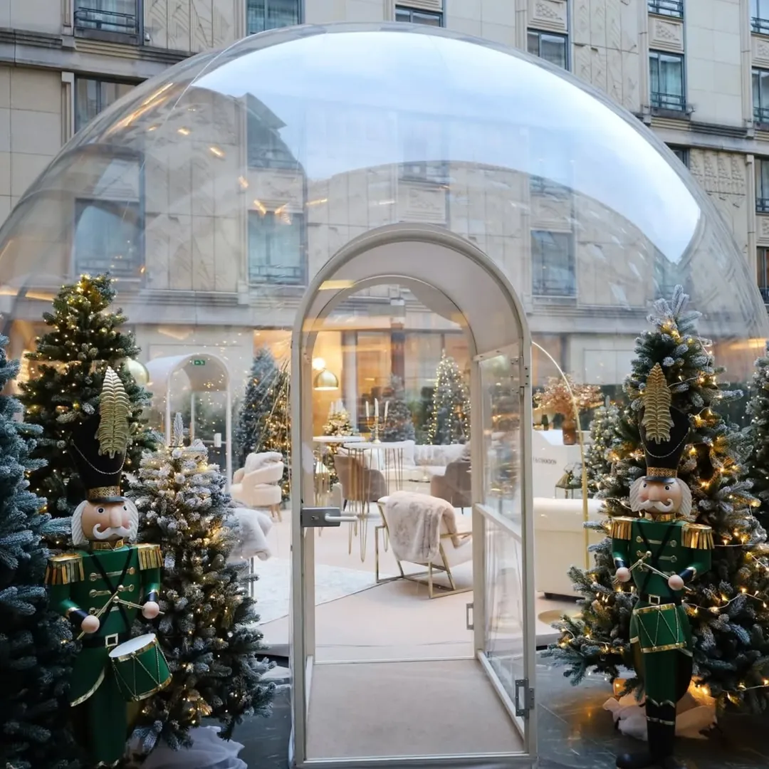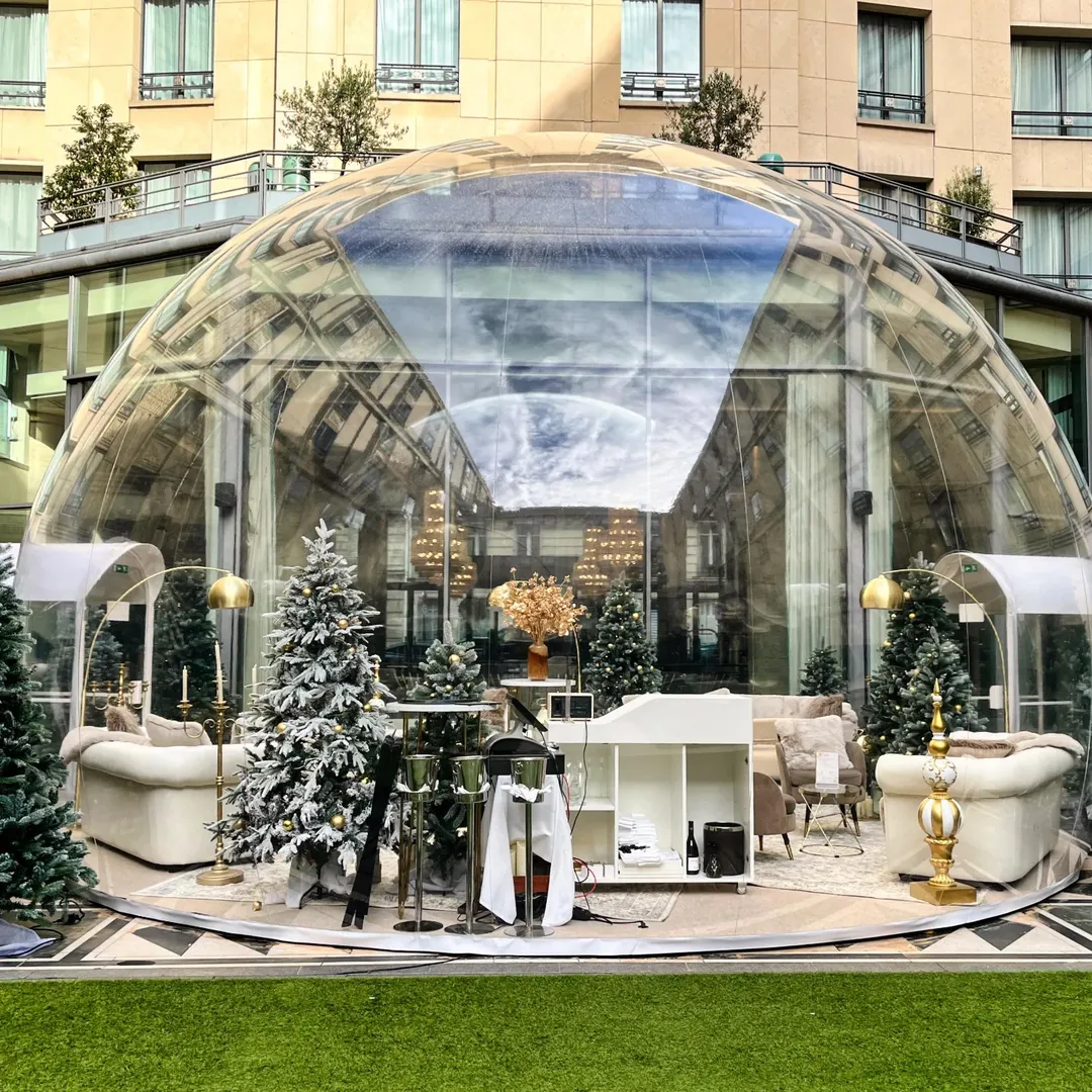 Imaginez un espace magique au cœur de Paris, où élégance historique et innovation contemporaine se rencontrent. Notre bulle gonflable à l’Hôtel du Collectionneur offre exactement cela : une expérience immersive sans précédent dans l’un des établissements les plus prestigieux de la capitale. Installée avec soin dans les espaces remarquables de cet hôtel 5 étoiles, la bulle crée un environnement à la fois intime et spectaculaire.