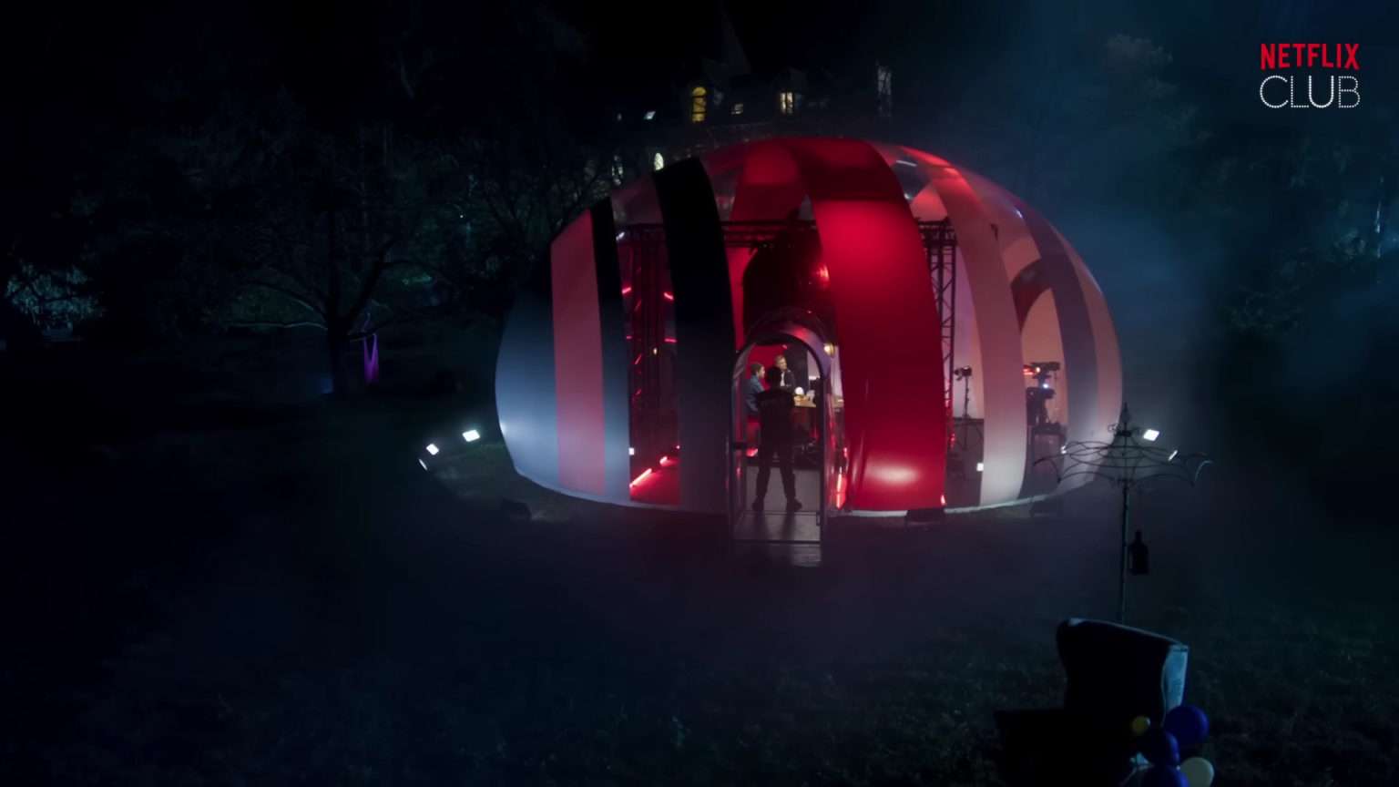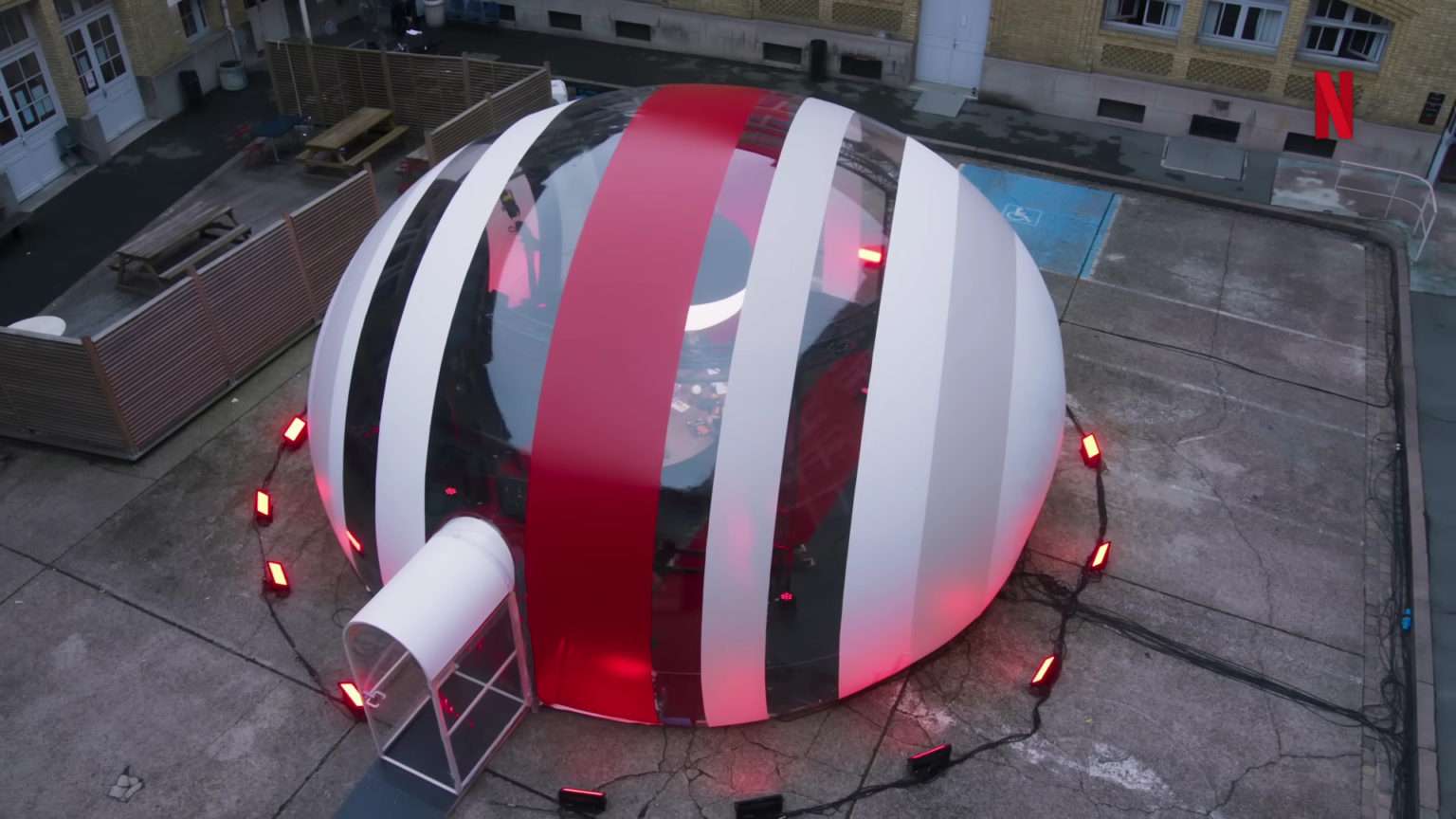 Le dome a été imaginé pour créer une anamorphose du célèbre logo de Netflix avec l’enveloppe du dome et son socle interieur