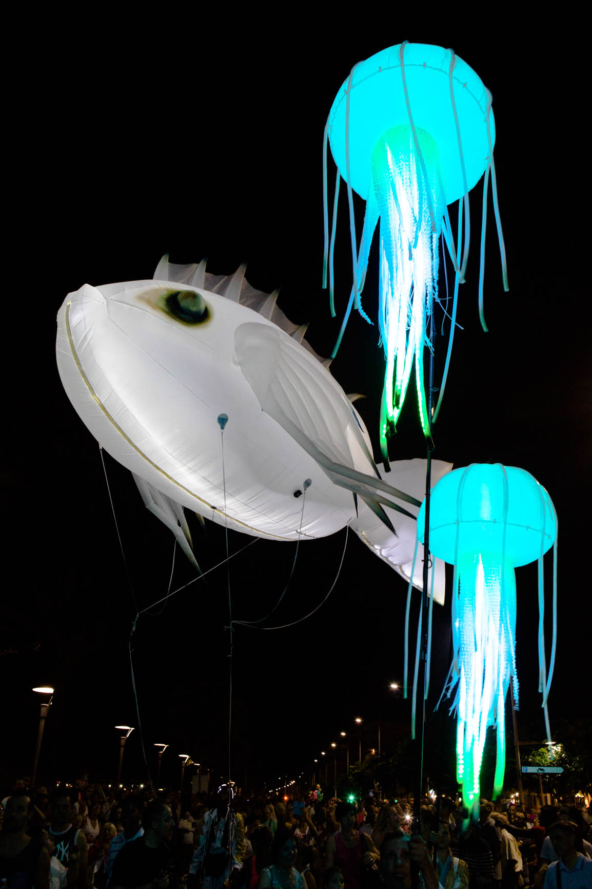 Réalisation du poisson gonflable géant pour la Compagnie Remue Ménage.