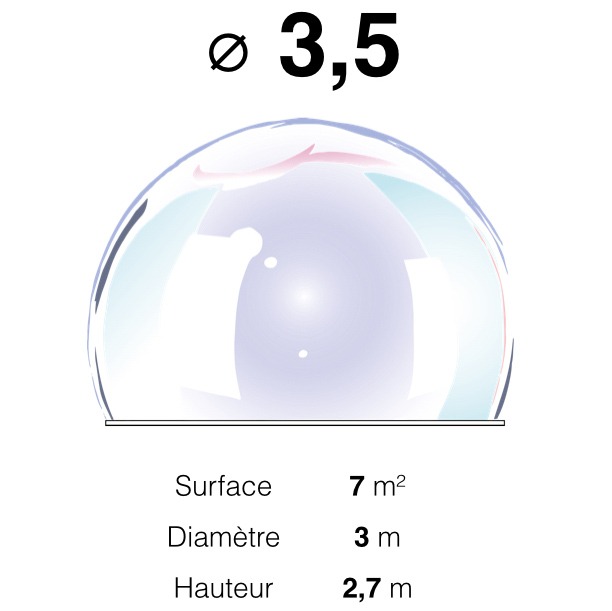 The vitribulle is made of a high quality PVC envelope, designed in our workshop. It is permanently ventilated to bring the forces and tensions on the whole structure in a uniform way, and to give it the necessary pressure to be self-supporting and to make the whole ground surface available.